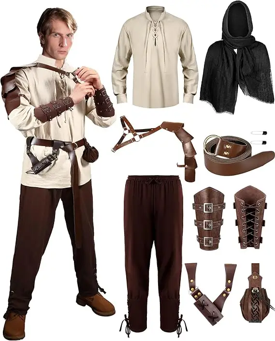 Once you’ve chosen your base outfit, layers and accessories are where your fantasy look truly comes to life. Adding pieces like vests, doublets, sashes, belts, cloaks, capes, shoulder armor, or gauntlets introduces depth, texture, and character to even the simplest ensemble. A long embroidered vest can instantly read as royal or scholarly, while a weathered leather belt and bracers suggest a seasoned traveler or rogue. Cloaks and capes bring movement and drama, but make sure they’re manageable if the event includes dancing or crowds. These layered details help tell your character’s story visually—think of them as your outfit’s personality. Don’t be afraid to mix materials (like velvet, brocade, leather, or linen) to create a more immersive and dimensional look.