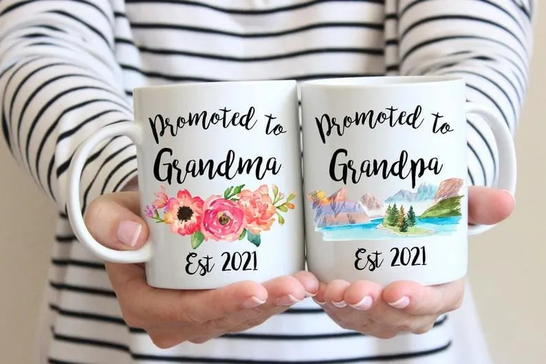 There are a lot of great options that says grandpa and grandma. This one is one of my favorites because I like that it says the year and also “promoted”. I love the colors too.