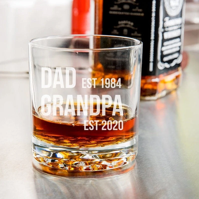 Here is an awesome whiskey glass that will let dad know he is about to become a grandpa. He can take a shot to celebrate!