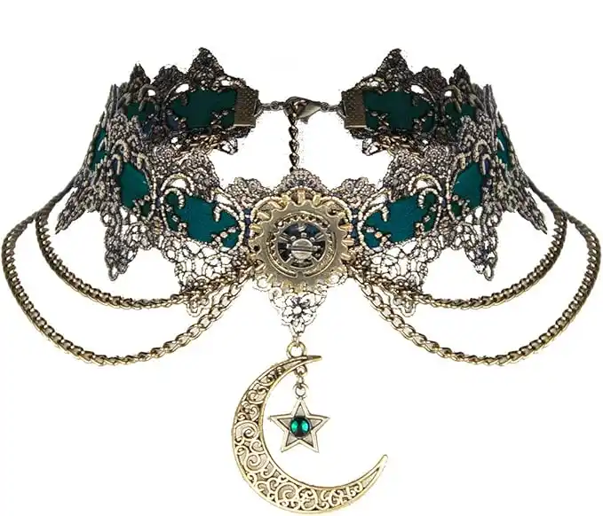 Start by identifying the vibe of your outfit. A whimsical fairy might choose delicate pieces with floral motifs, iridescent stones, and dainty chains, while a regal queen would lean toward bold statement pieces like gemstone-studded chokers, ornate cuffs, or a dramatic tiara. A dark sorceress or villainess could incorporate gothic elements like black lace chokers, claw rings, or antique silver filigree. Look for materials and finishes that enhance your color palette—gold for warmth and luxury, silver for cool tones and mystique, bronze or pewter for a more medieval or earthy feel.